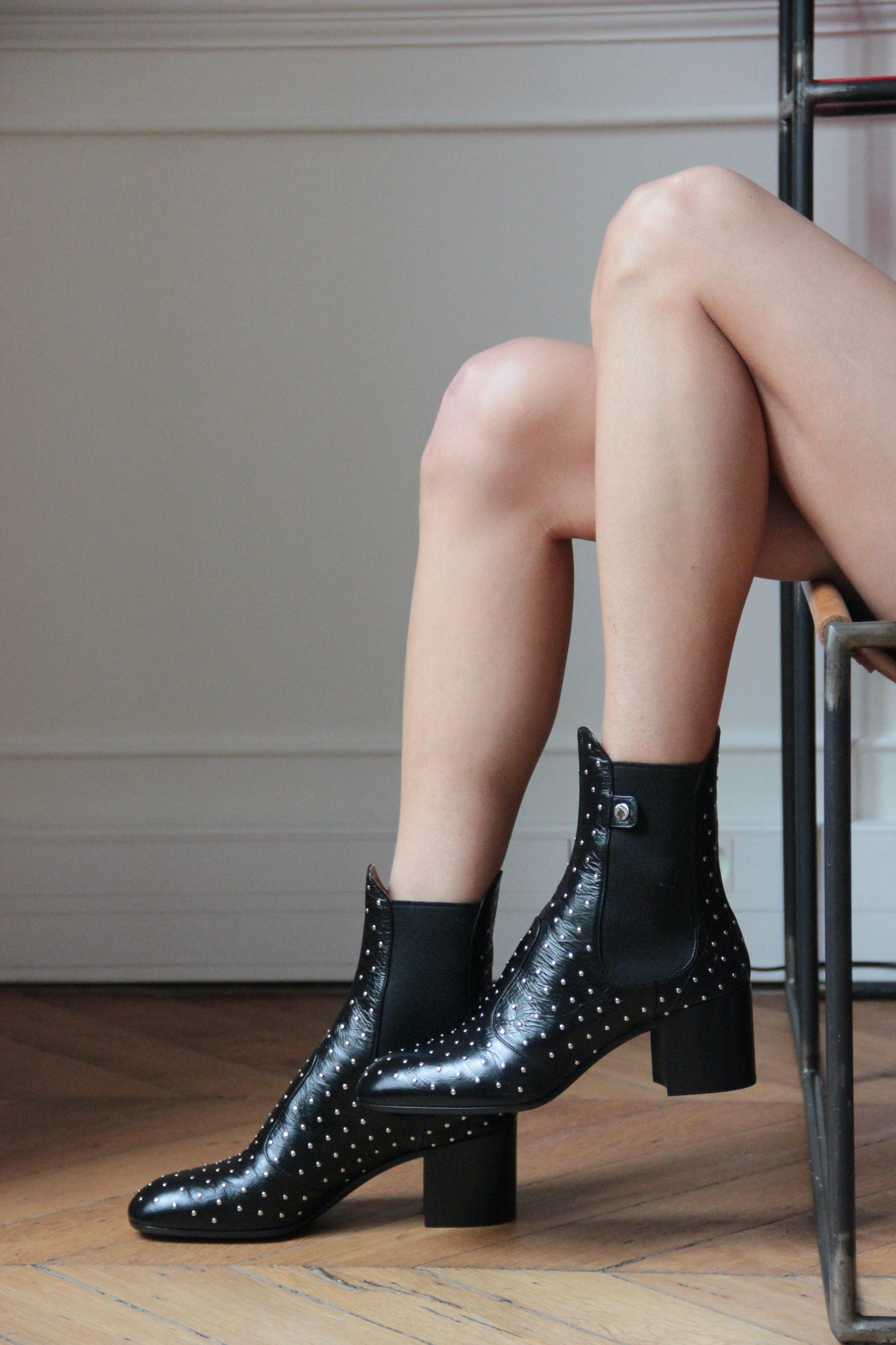 Composition : 100% veau, cuir brillant avec clous argentés.