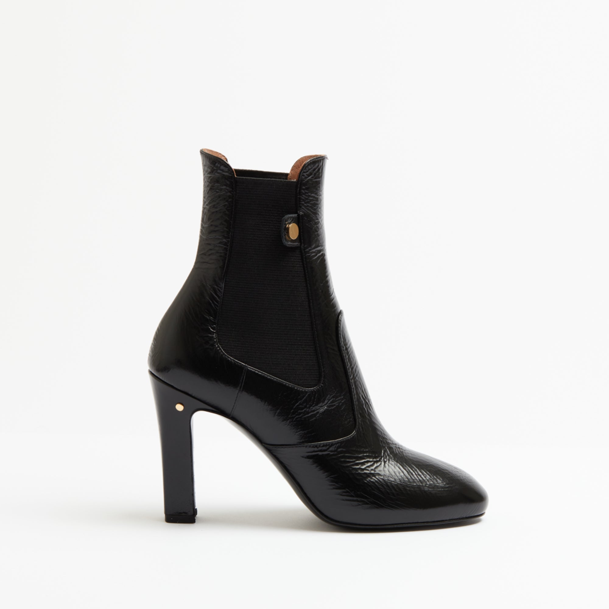 Notre bottine iconique Angie revisitée avec un talon haut.