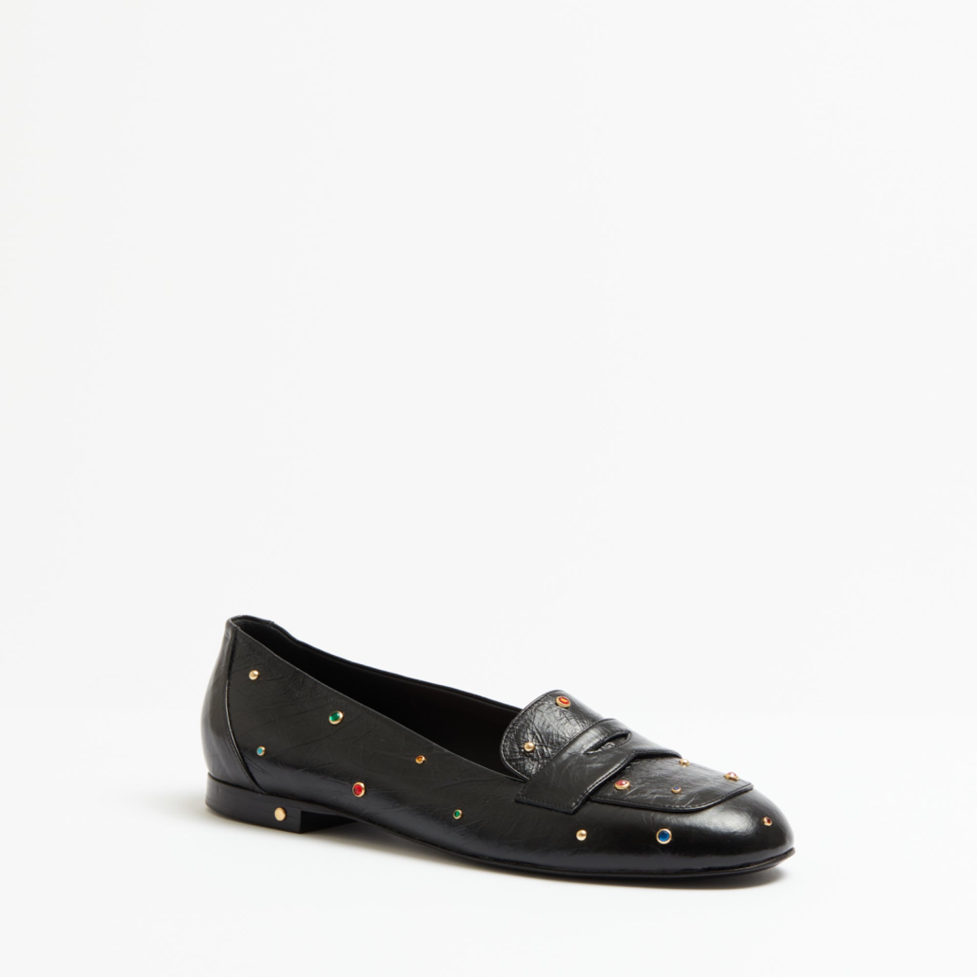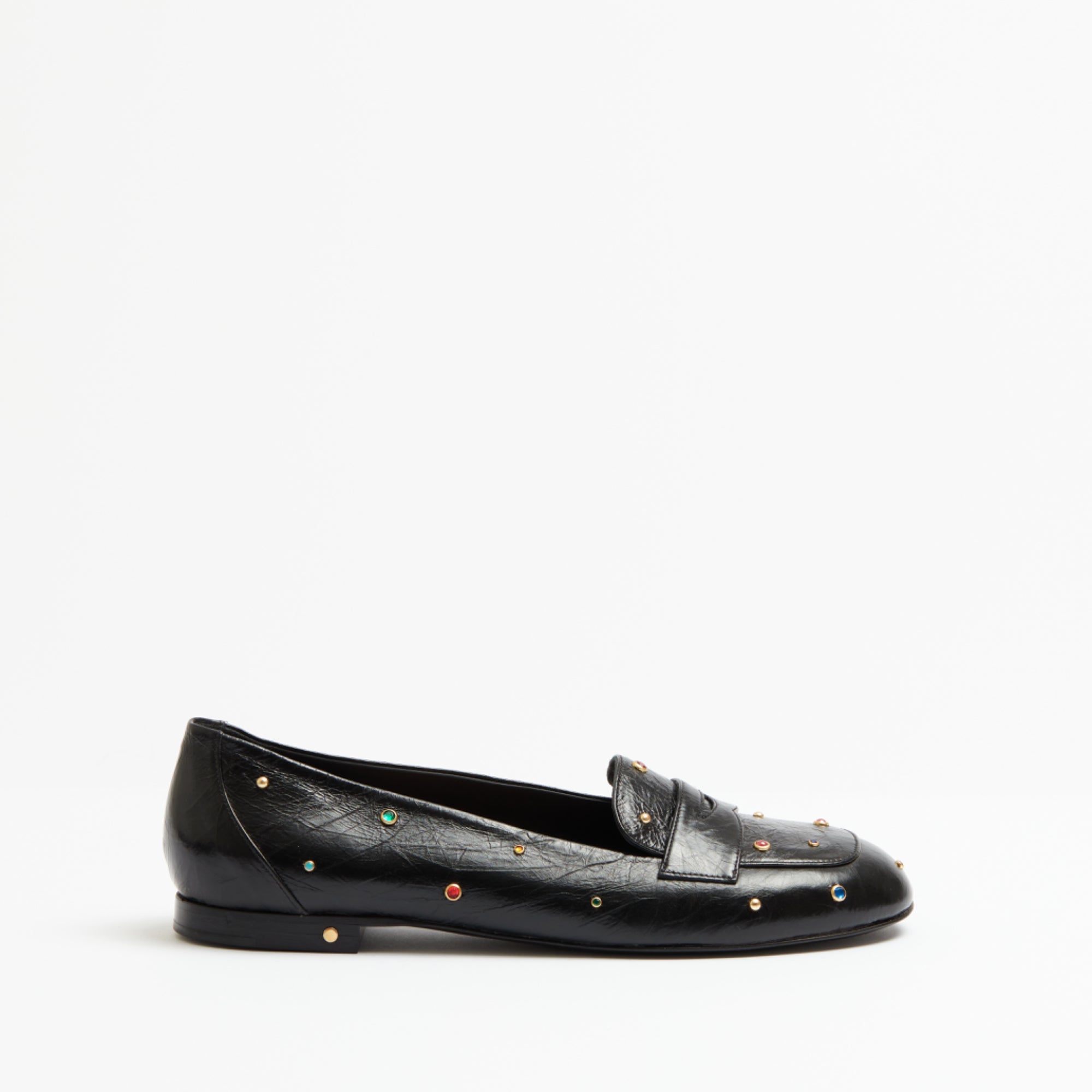Mocassin plat à bout rond avec ornement de pierres multicolores.