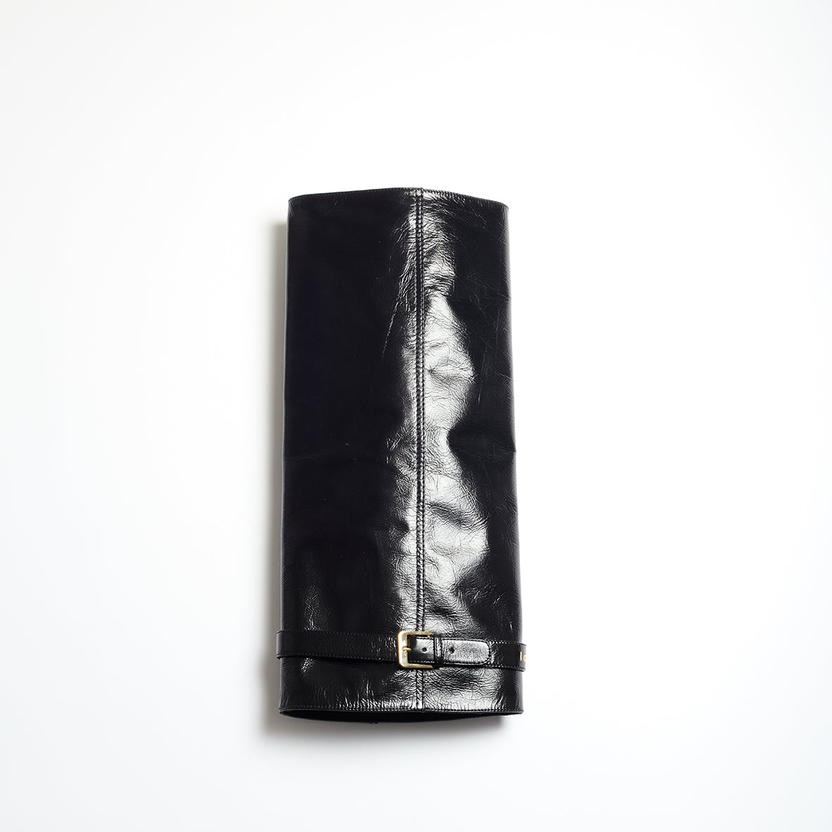 Straight black leather gaiters, 40 cm high, designed to be worn over the Marble boots for a full boot effect.